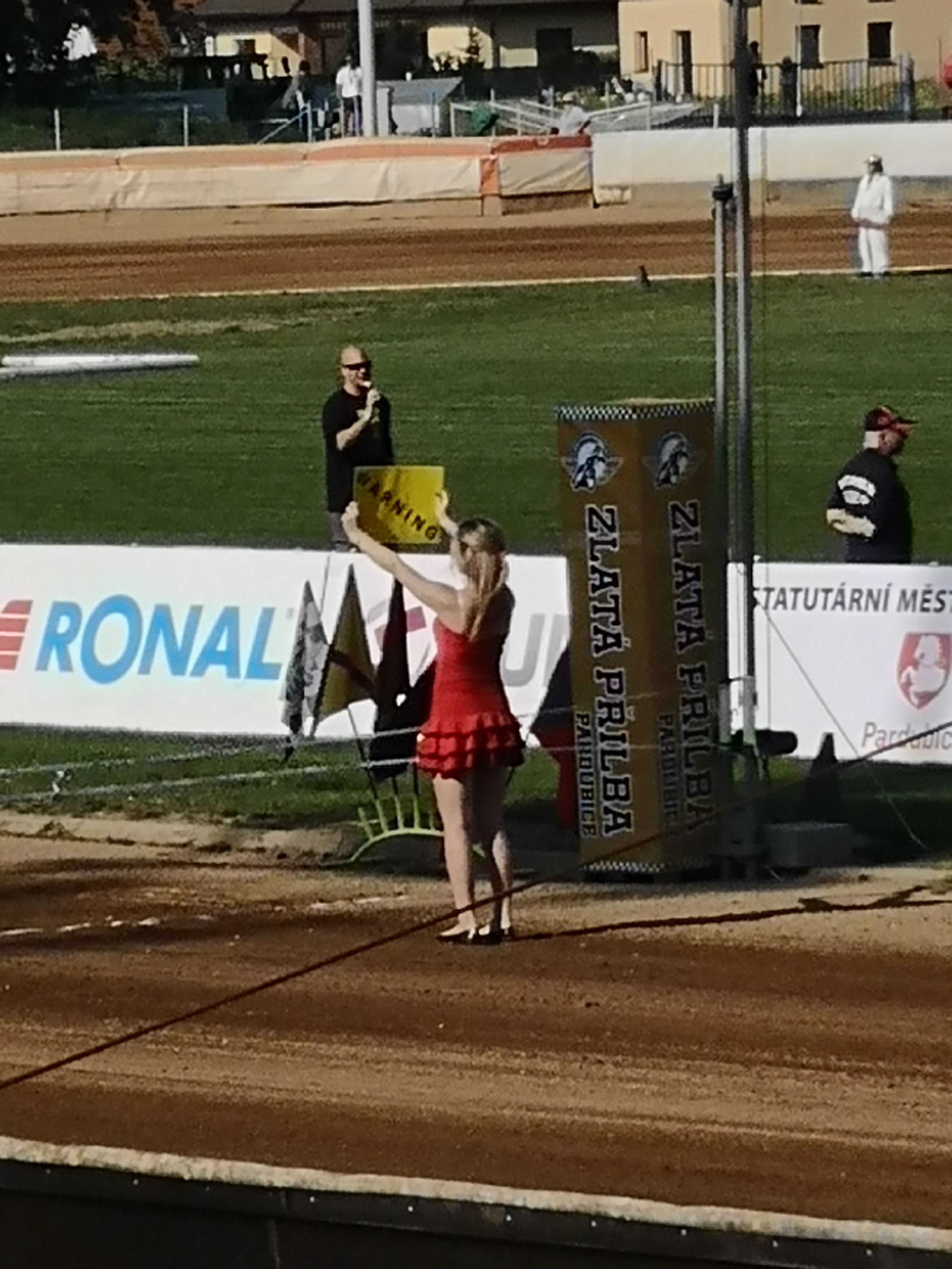 Voll erstaunt, die Stadionwirschaft in Pardubice wurde umgebaut und renoviert. Eine Risenbühne ist aufgebaut, für Livekonzert. Autogramme gibt es und Dakar Autos und Motorräder Aufstellung ist auch noch.
